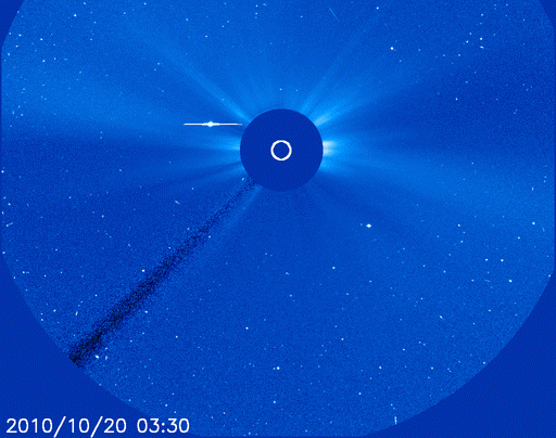 Animasi pergerakan komet SOHO-1932 yang sedang menuju jarak terdekatnya dengan Matahari sekaligus menjelang masa akhir keberadaannya. Kredit : SOHO